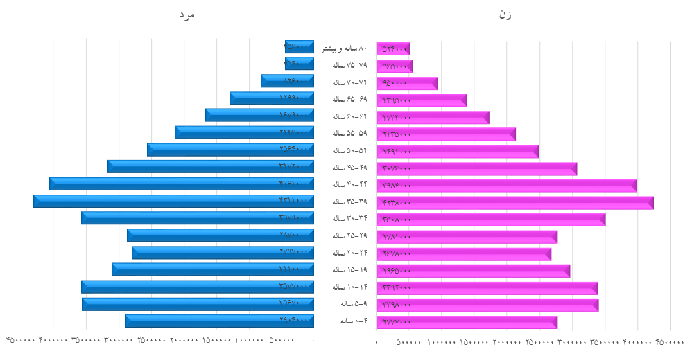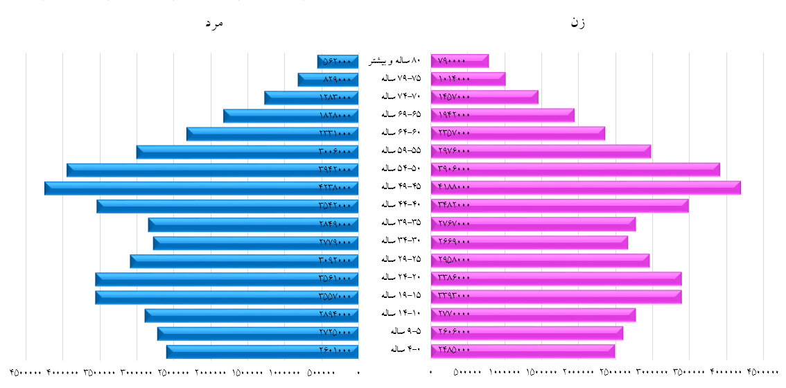 هرم جنسی - سنی جمعیت کشور در سال 14013