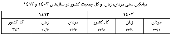 از سال 1403 تا 1413 میانگین سنی کل از 5/33 به 1/37 سال افزایش یافته؛ به عبارت دیگر افزایش تقریباً 6/3 سال در این دهه رخ داده است.